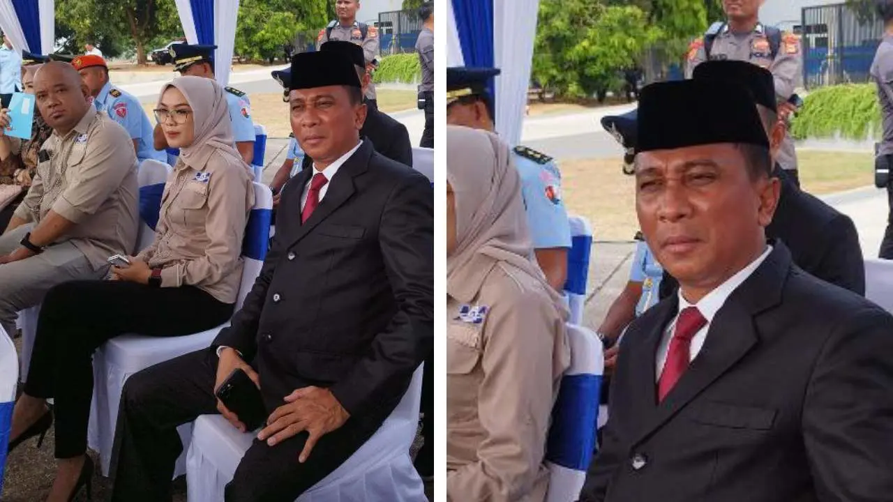 MAKASSAR—Plt Kasatpol PP Ikhsan NS, S.Sos, MM mendampingi Wali Kota Makassar Ir. H. Moh. Ramdhan Pomanto di Serah Terima Jabatan Danlanud TNI AU Sultan Hasanuddin, Senin (23/10/2023).